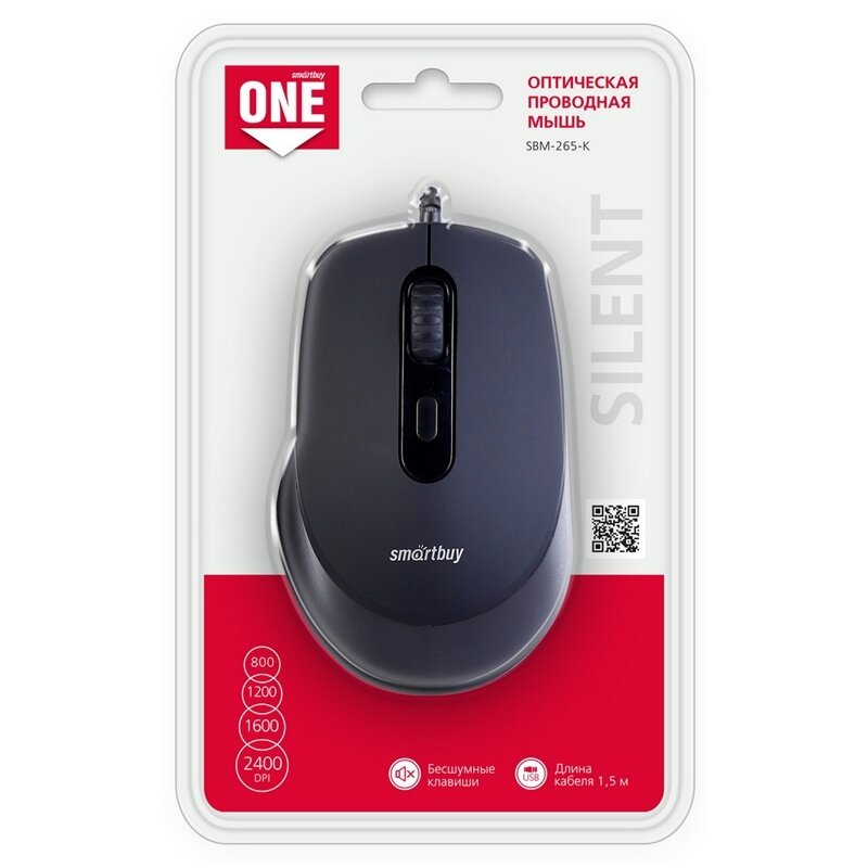Мышь проводная SmartBuy ONE 265-K SBM-265-K беззвучная черная