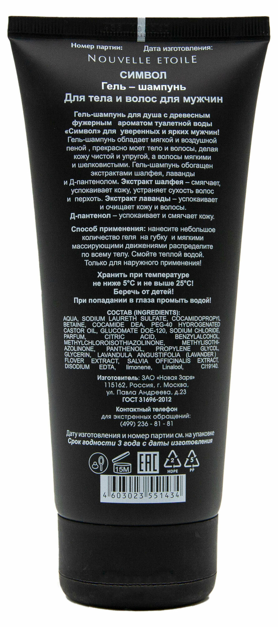 Гель-шампунь для тела и волос для мужчин Новая Заря Symbol 200 мл