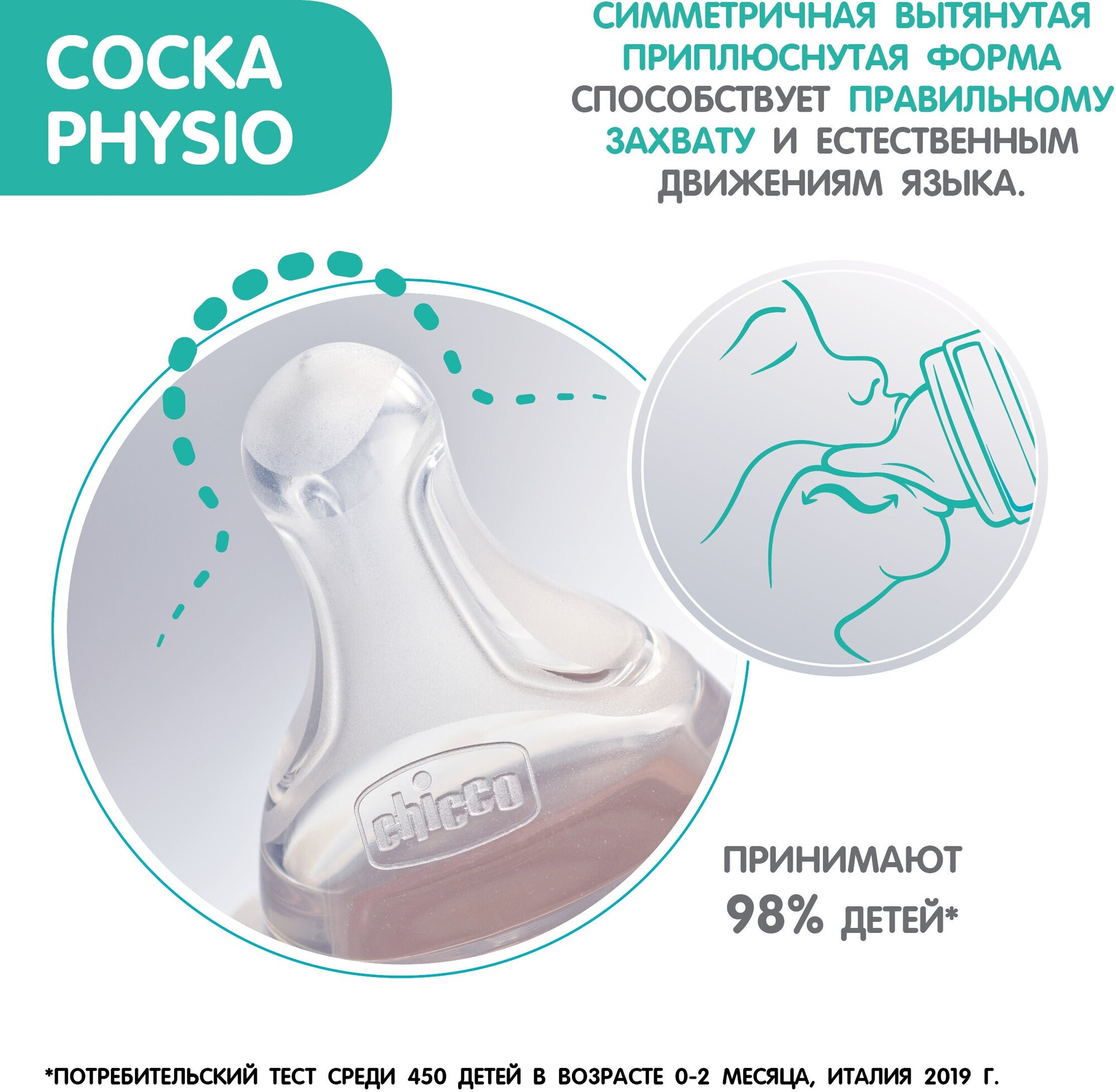 Идеальный захват: Соска идеально адаптируется к рту ребенка и способствует естественному сосанию. Бутылочку приняли 9 из 10 детей. *
