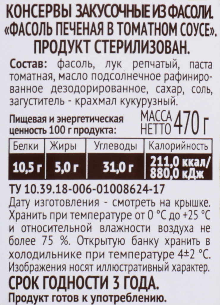 Фасоль, печёная в густом томатном соусе, порадует своим мягким вкусом, как при приготовлении дома. Фасоль в томатном соусе - это один из главный ингредиентов классического английского завтрака. Печеная фасоль - это готовая закуска, прекрасный гарнир, а также ее можно использовать в качестве основы для приготовления других блюд.
