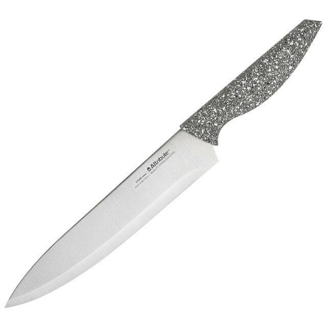 Нож поварской Attribute Stone, 20 см применяется для нарезки, шинковки, измельчения любых продуктов. Нож имеет удобную пластиковую рукоятку. Остроконечное лезвие выполнено из высококачественной нержавеющей стали.