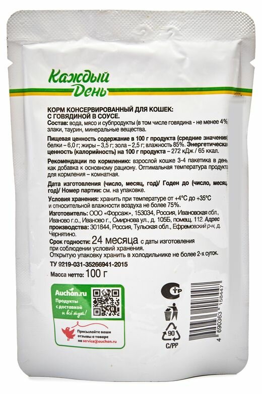 Сервис сравнения цен СкидкаГИД предлагает сравнить цены на товар «Корм для кошек Каждый День с говядиной в соусе 100 г»