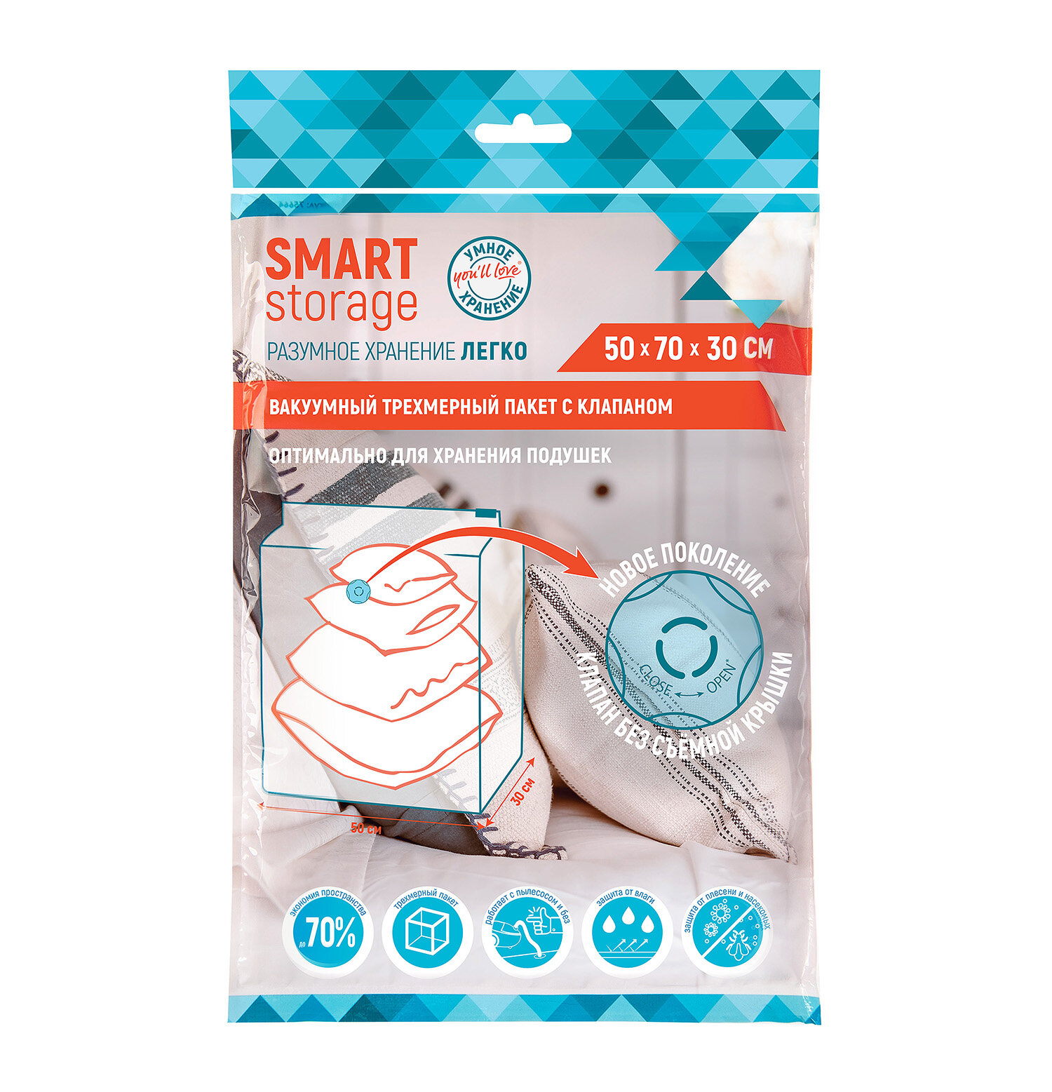 Вакуумный трехмерный пакет You'll love Smart Storage с клапаном 50х70х30 см