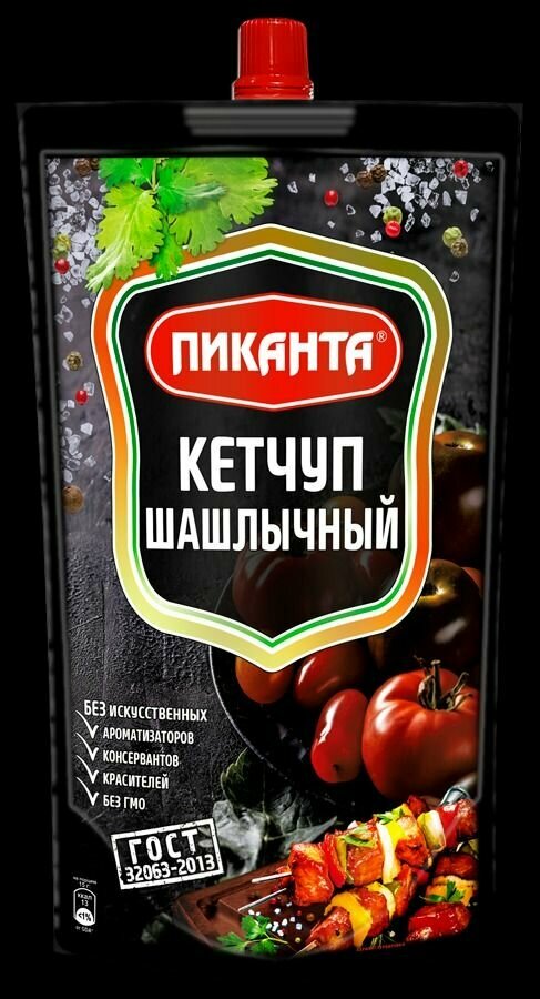 Спелые томаты, лучок, ароматный чеснок и паприка, душистый укроп и петрушка, а также пряные специи вот секрет неповторимого вкуса шашлычного кетчупа Пиканта.