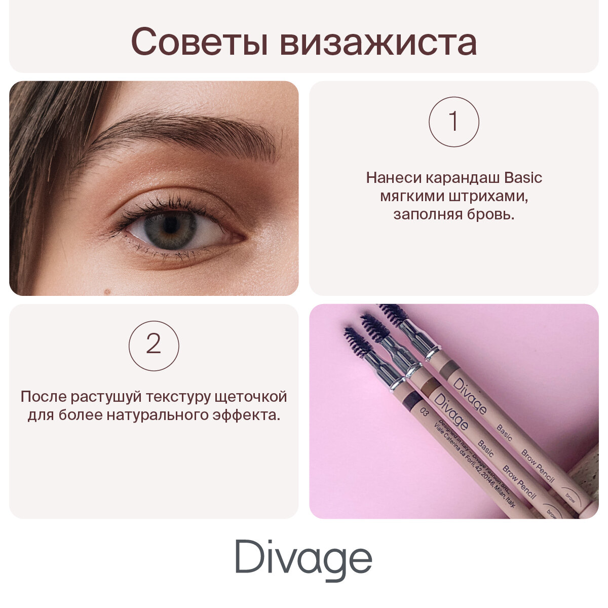 | Полное наименование | Карандаш для бровей Divage Basic тон 01 светло-коричневый 1,1 г |