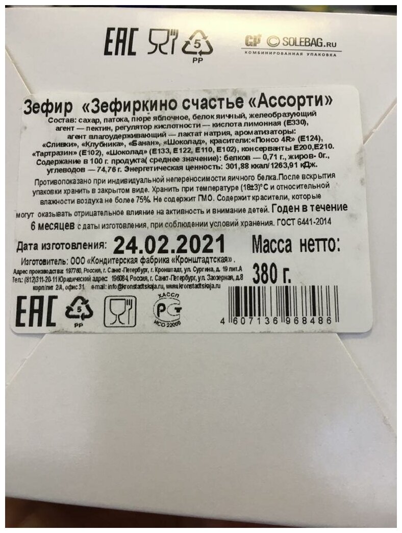 Зефир КФ Кронштадтская Зефиркино счастье ассорти 380 г