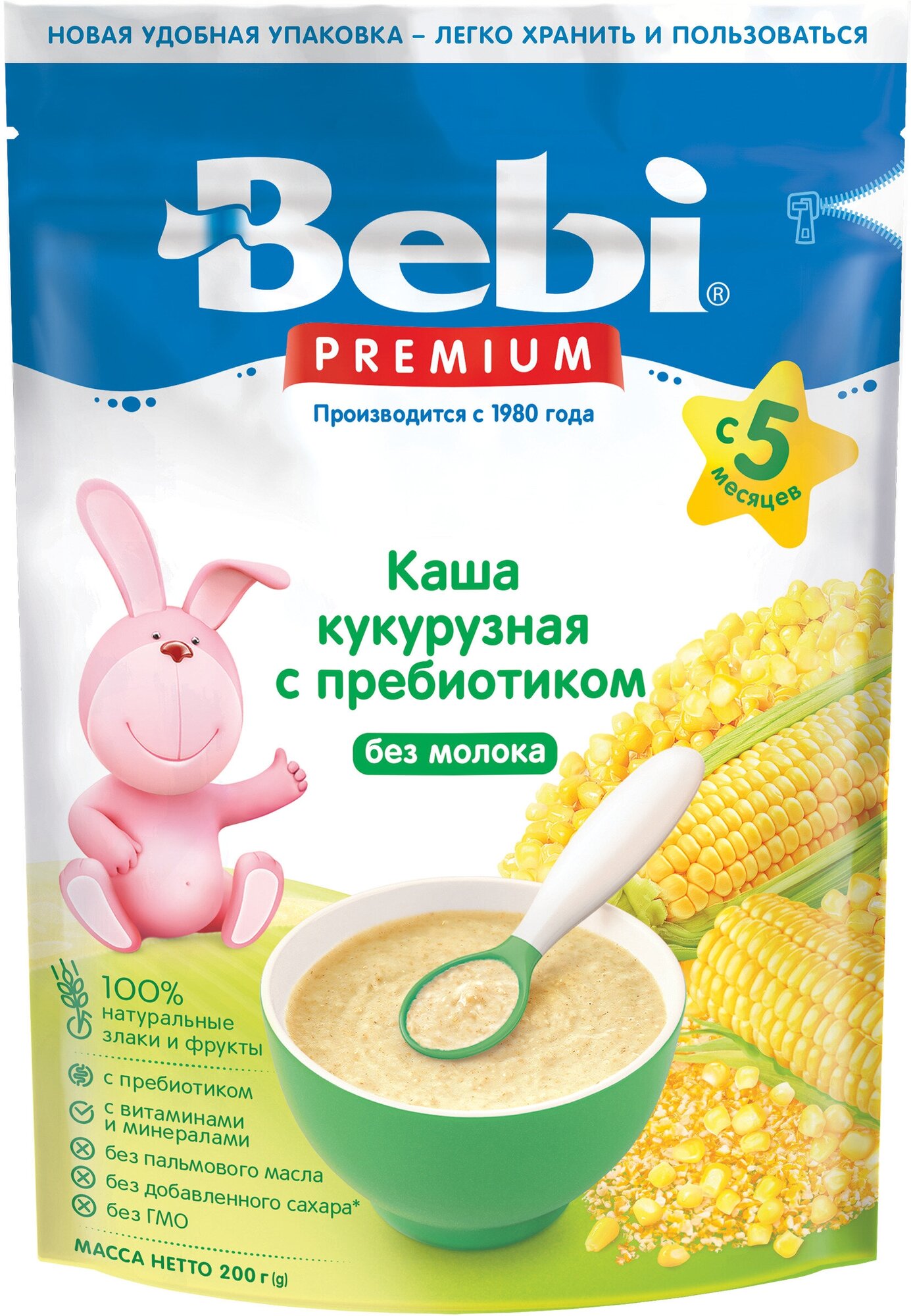 Питательная безмолочная каша для первого прикорма с 5 месяцев. Не содержит сахар. Пребиотик инулин обеспечивает оптимальное пищеварение, стимулируя выработку полезной микрофлоры в кишечнике. Обогащена витаминами и минералами. Первые месяцы жизни важно обеспечить исключительно грудное вскармливание как наиболее подходящее питание для младенца. Затем при расширении рациона выбирать безопасные, с точки зрения развития аллергии, продукты прикорма. Безмолочная низкоаллергенная кукурузная каша для первого прикорма Bebi Premium - прекрасный выбор первого блюда прикорма в рационе питания малыша старше 5 месяцев. Эта каша не содержит сахар, молоко и глютен самые частые виновники аллергии на первом году жизни. Еще одним преимуществом этой каши, является обогащенный состав: пребиотики отвечают за здоровье кишечника и укрепляют иммунную защиту, а витаминно-минеральный премикс способствует процессам нормального физического и нервно-психического развития ребенка. Для разведения каши можно использовать сцеженное мамино молоко, адаптированную или специальную смесь, которую получает ребенок, овощной отвар. Аллергию легче предотвратить, чем лечить - сохраним здоровье вашему крохе!