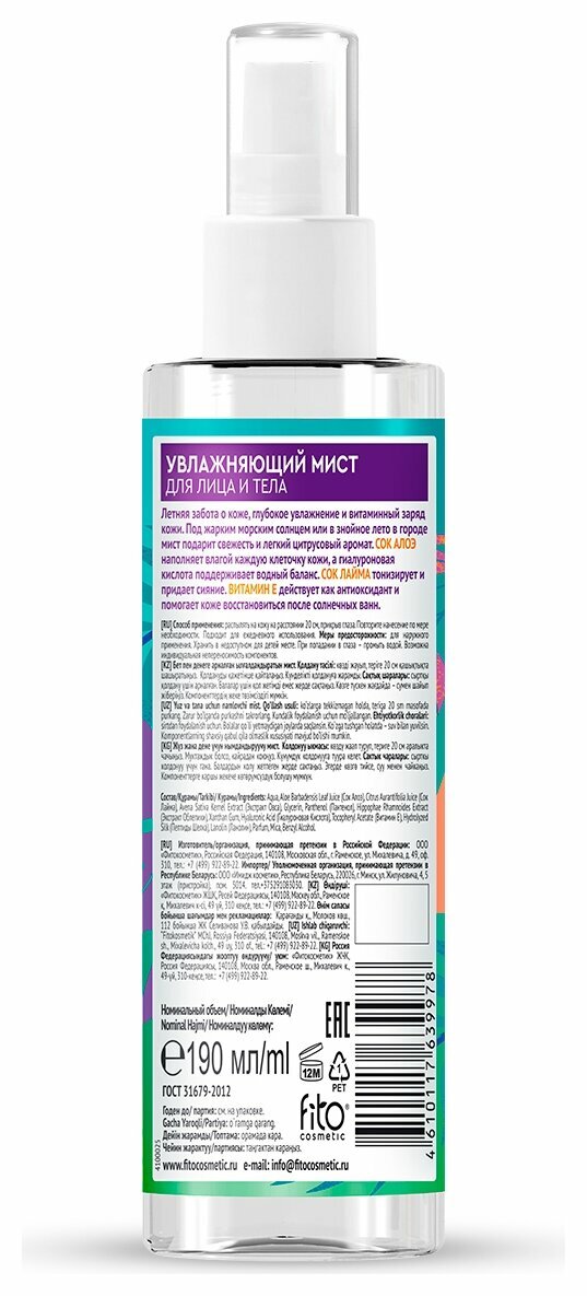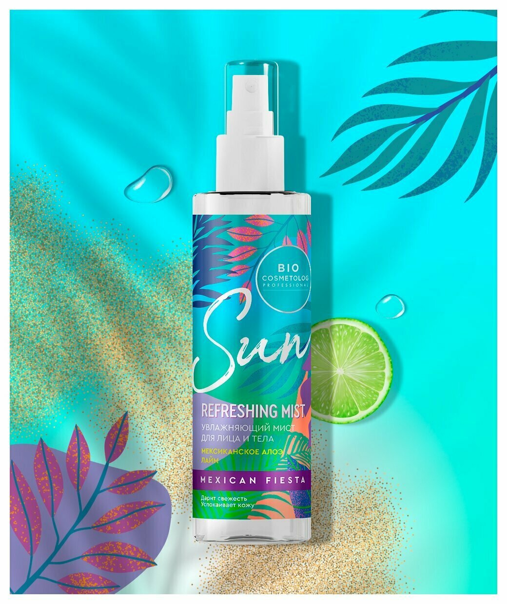 Летняя забота о коже, глубокое увлажнение и витаминный заряд кожи. Под жарким морским солнцем или в знойное лето в городе мист подарит свежесть и легкий цитрусовый аромат. Сок алоэ наполняет влагой каждую клеточку кожи, а гиалуроновая кислота поддерживает водный баланс. Сок лайма тонизирует и придает сияние. Витамин Е действует как антиоксидант и помогает коже восстановиться после солнечных ванн.