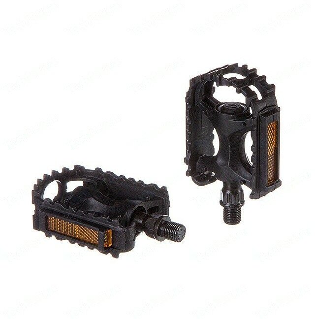 Педали STG FP-628 для детских велосипедов. Материал корпуса высокопрочный пластик. Ось из хромомолибденовой стали с резьбой 1/2 дюйма. Подшипник шариковый, световозвращатели в торцах педалей.