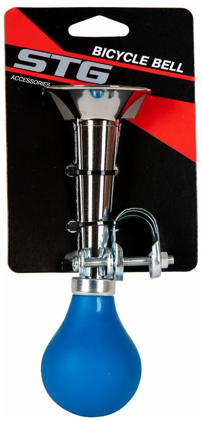 Клаксон STG LJ-J4-7 предназначенный для установки на руль любого велосипеда, за счет универсального металлического хомута. Материал металл, резина, резиновая груша класона выпускается в четырех цветах красный, синий, черный и фиолетовый. Хомут крепления на руль диметром 22.2 мм на винте.