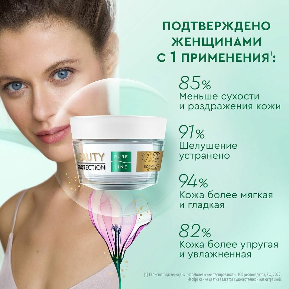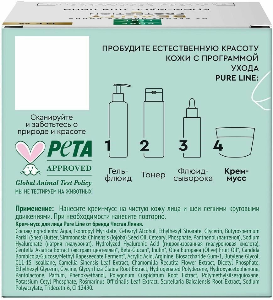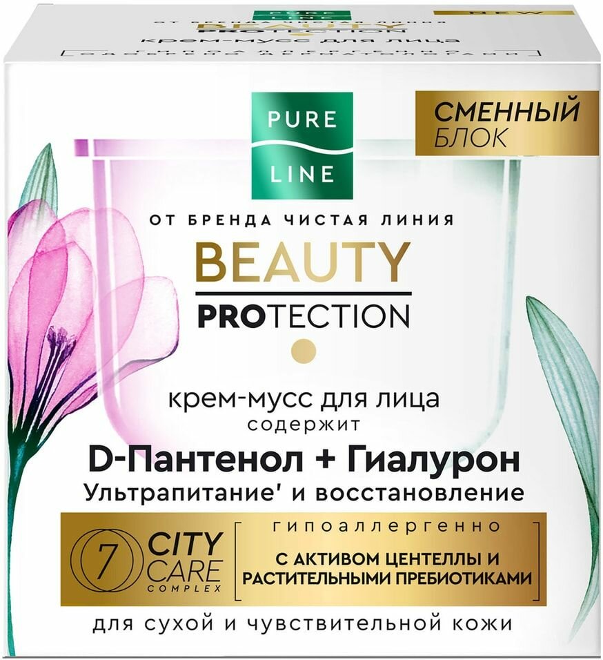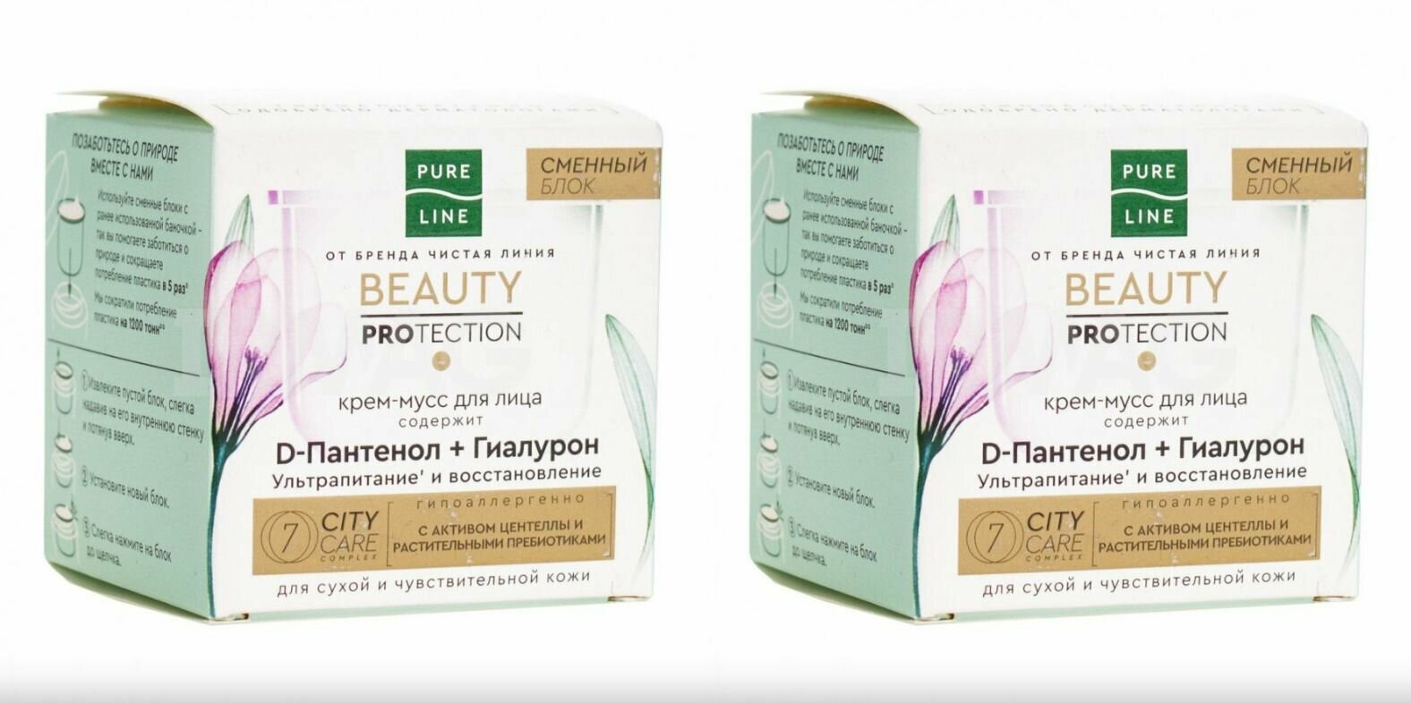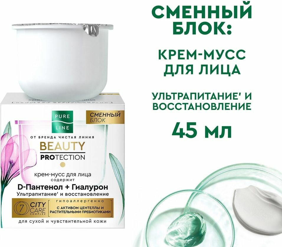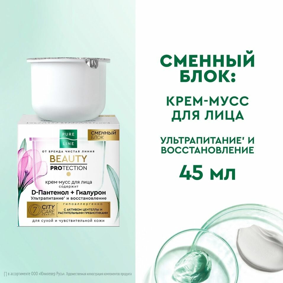 Крем-мусс для лица PURE LINE Чистая линия с гиалуроновой кислотой и d-пантенолом 45 мл
