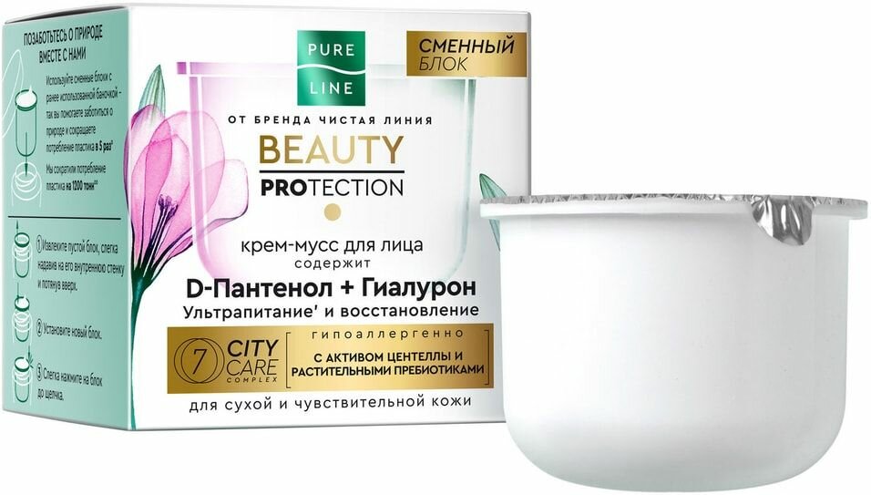 Гипоаллергенный крем-мусс разработан специально для сухой и чувствительной кожи. Содержит D-пантенол и гиалуроновую кислоту. Комплекс 7 CITY CARE защищает от воздействия загрязнений окружающей среды и обеспечивает 7 преображающих эффектов. Результат: меньше сухости и признаков раздражения кожи, шелушение устранено, кожа более мягкая и гладкая, она более упругая и увлажненная. Продукт представлен в формате рефилл.