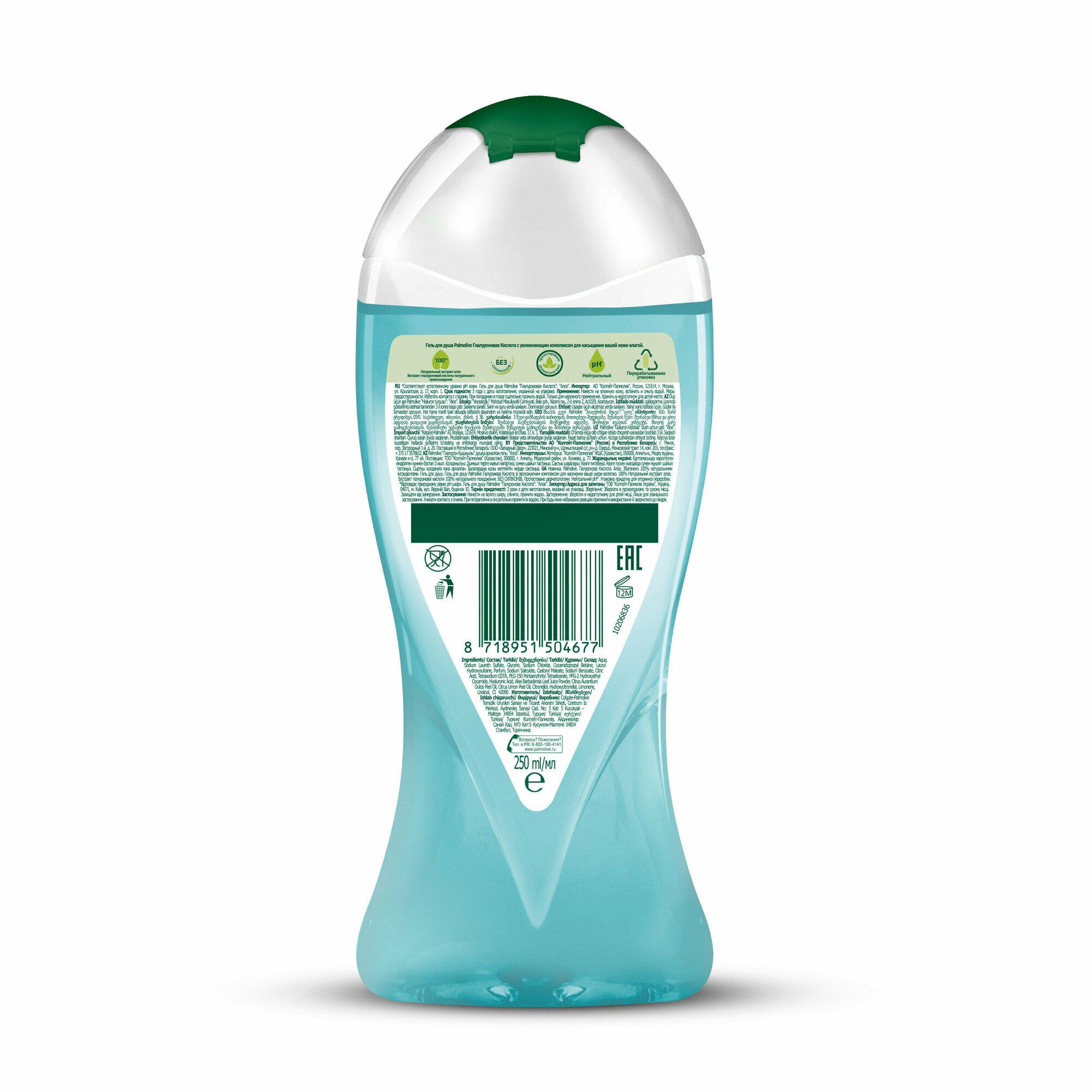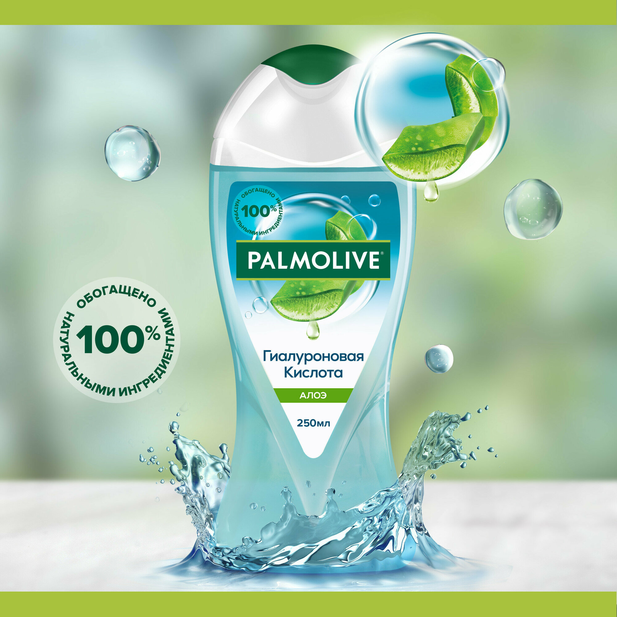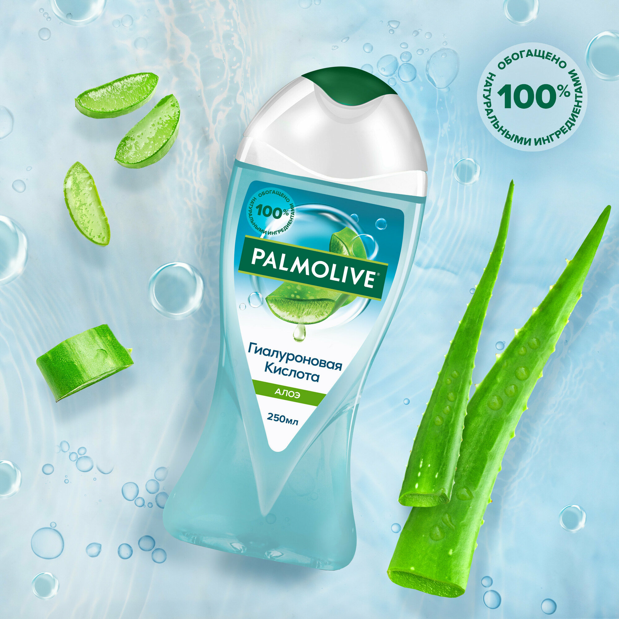Попробуйте женский Гель для душа Palmolive Гиалуроновая Кислота Алоэ с увлажняющим комплексом для насыщения вашей кожи влагой с натуральным экстрактом алоэ, а также с экстрактом гиалуроновой кислоты натурального происхождения. Контроль увлажнения кожи в ваших руках. Перерабатываемая пластиковая бутылка объемом 250 мл. Формула женского геля для душа обогащена 100% натуральными ингредиентами. Без парабенов и силиконов, а PH-нейтральная очищающая формула геля для душа бережно заботится о Вашей коже.