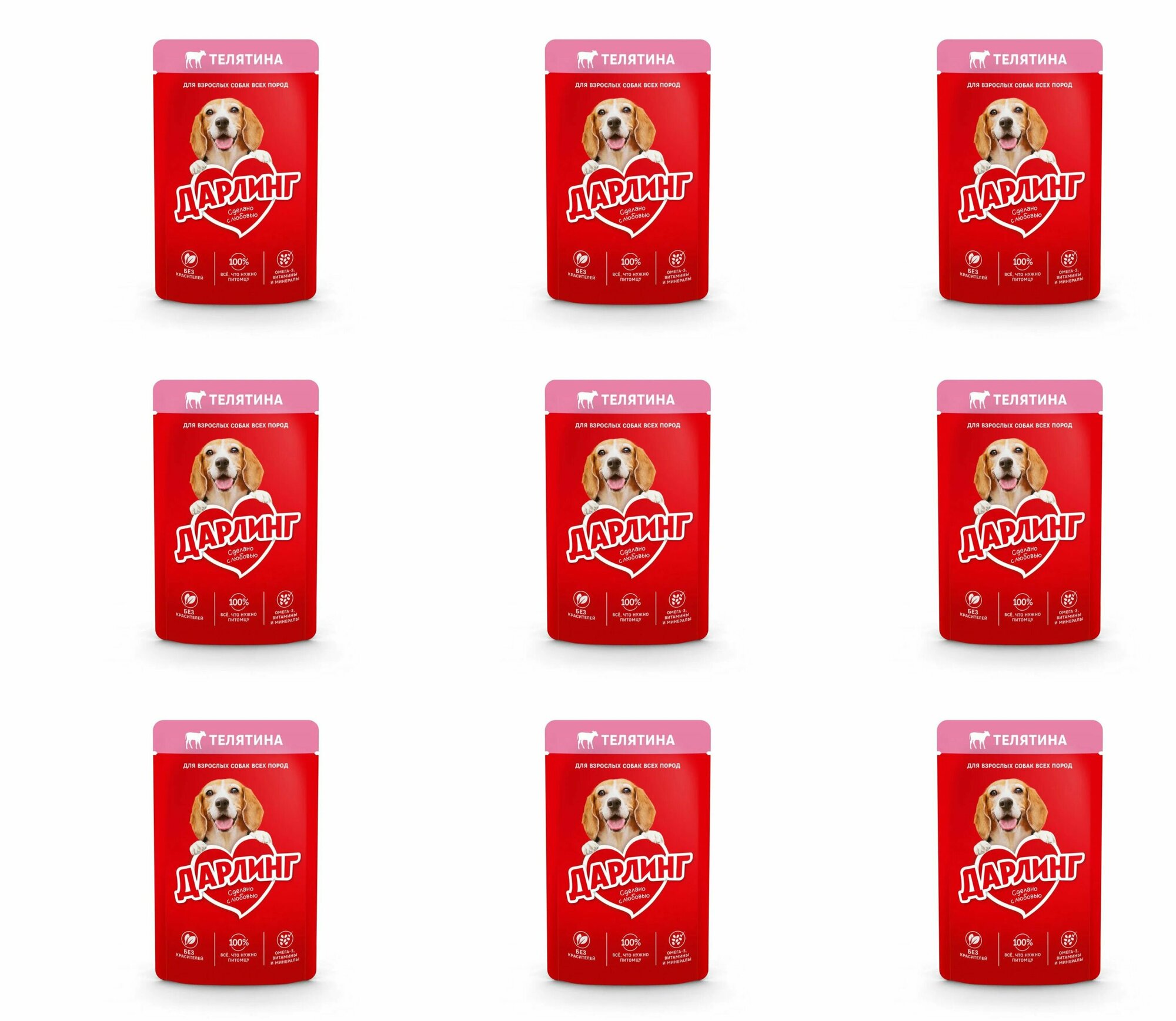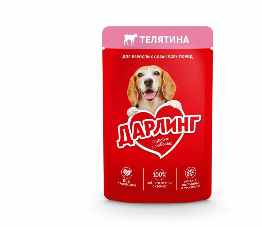 Корм ДАРЛИНГ для собак это сбалансированное питание, в котором содержится на 100% всё, что нужно собаке каждый день. Он сделан с любовью из качественных ингредиентов, а также содержит Омега-3 жирные кислоты, витамины и минералы, необходимые Вашей собаке, чтобы быть здоровой, активной и дарить радость Вашей семье. Без красителей и без добавления искусственных ароматизаторов и консервантов.