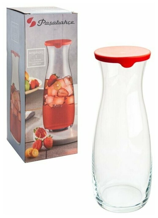 Графин с красной пластиковой крышкой 1180 мл. Изделие прекрасно впишется в интерьер Вашей кухни и станет достойным дополнением к кухонному инвентарю.