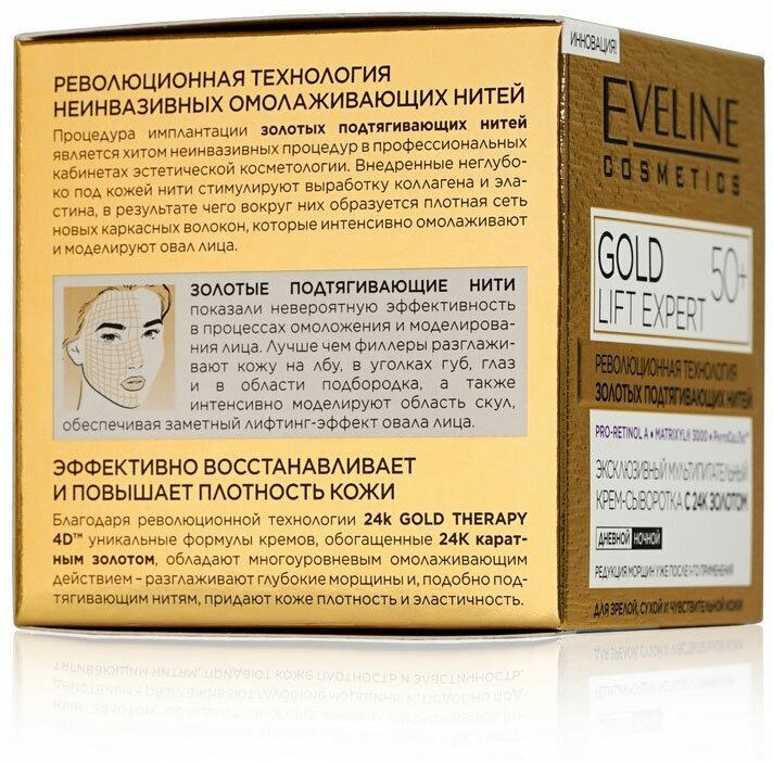 Сервис сравнения цен СкидкаГИД предлагает сравнить цены на товар «Крем-сыворотка для лица Еveline Gold Lift Expert мультипитательная с 24K золотом 50+ 50 мл»