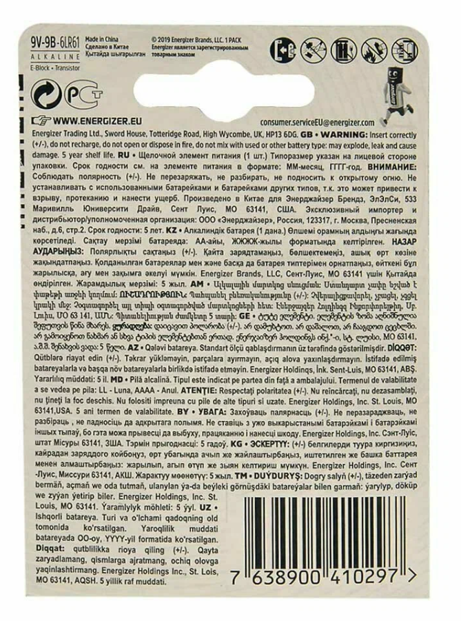 Суть всего семейства батареек Energizer MAX в долговечности и инновациях. Батарейки 9V от Energizer могут сохранять заряд при хранении до 5 лет, то есть они всегда будут у вас под рукой именно тогда, когда они вам понадобятся. Когда речь заходит об уловителях дыма, игрушках, радиоуправляемых машинках, часах и прочих важных устройствах, вы можете быть уверены, что батарейки Energizer будут надежными и проработают долго.