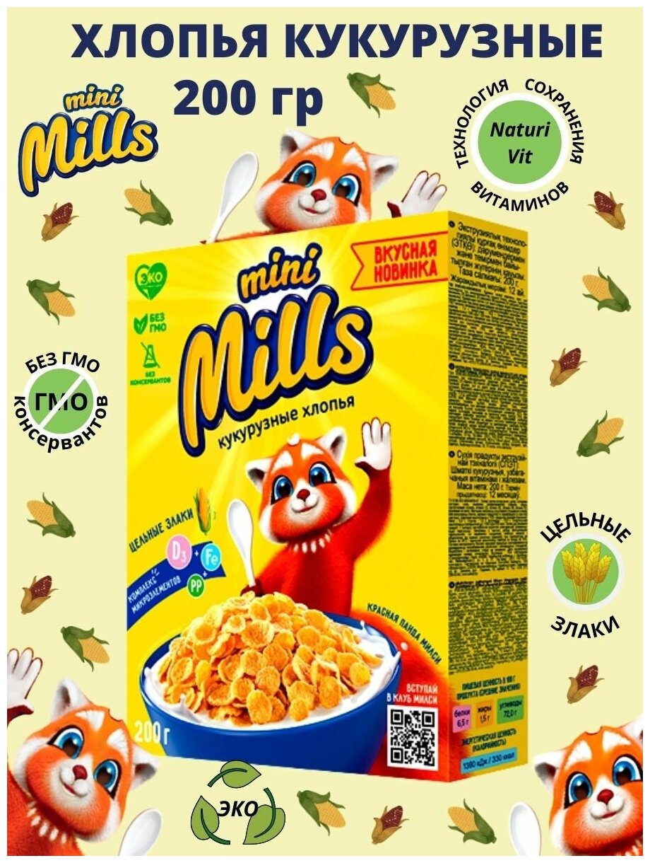 Хлопья кукурузные Mini Mills обогащенные витаминами и железом 200 г