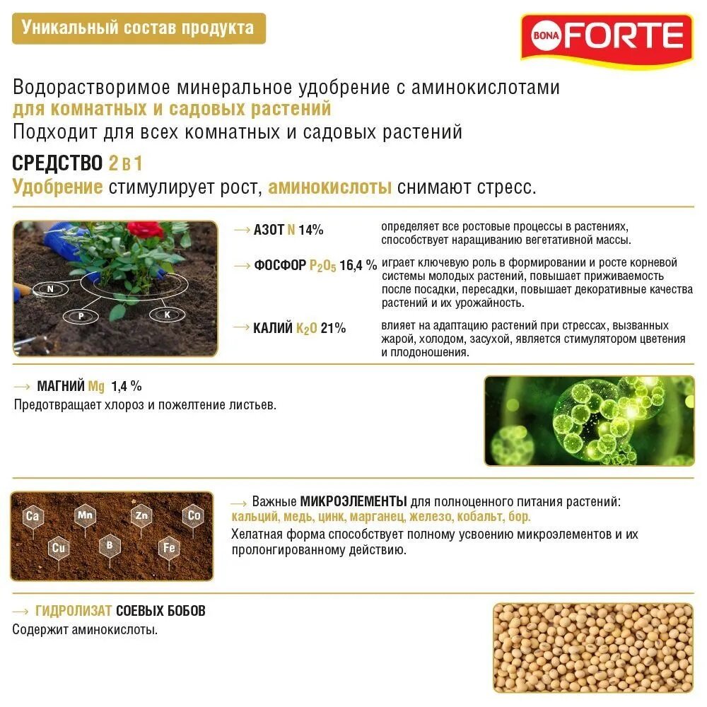 Удобрение водорастворимое Bona Forte с аминокислотами для комнатных и садовых растений 100 г
