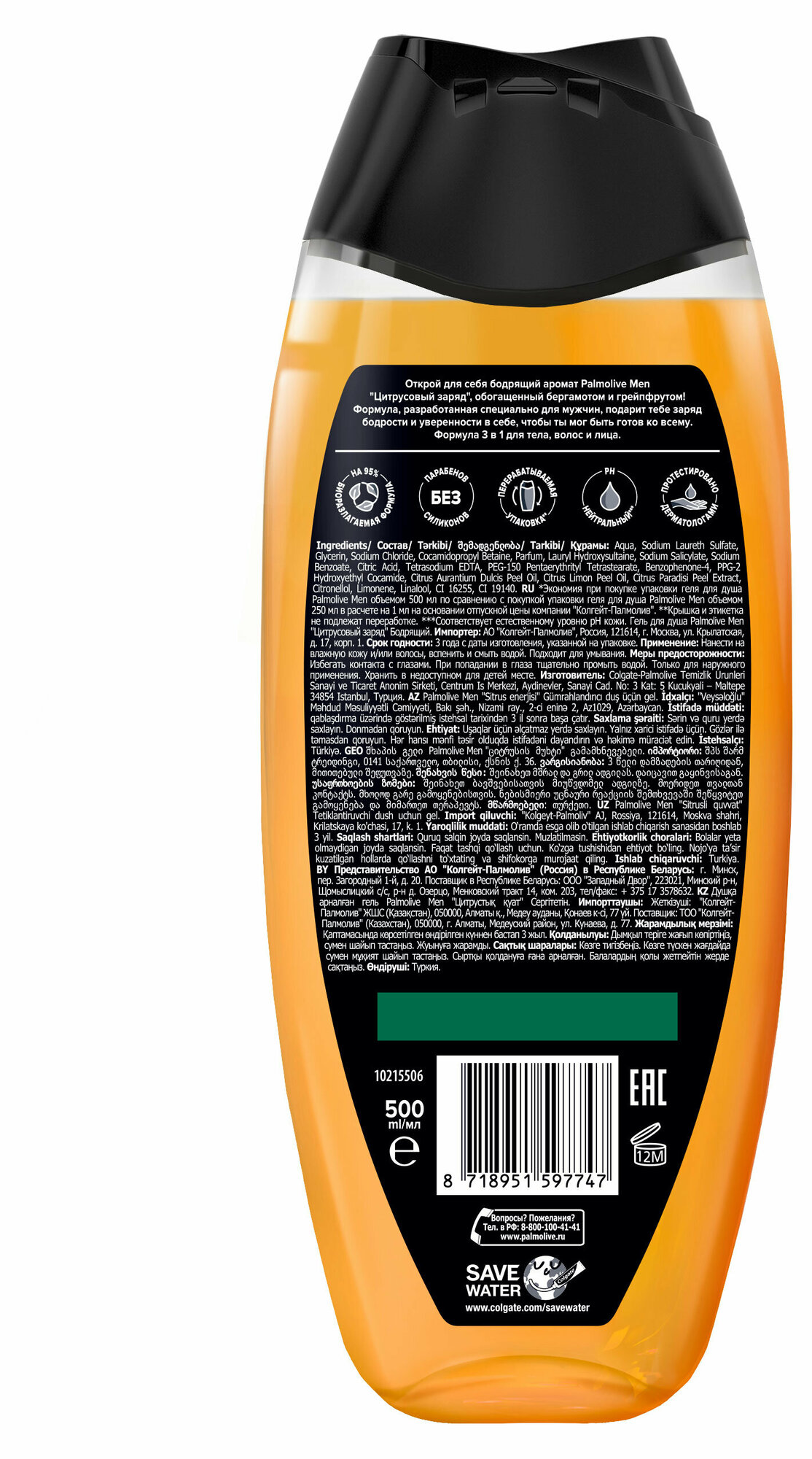 Гель для душа мужской Palmolive MEN Бодрящий Цитрусовый Заряд является средством 3 в 1: для тела, волос и лица.