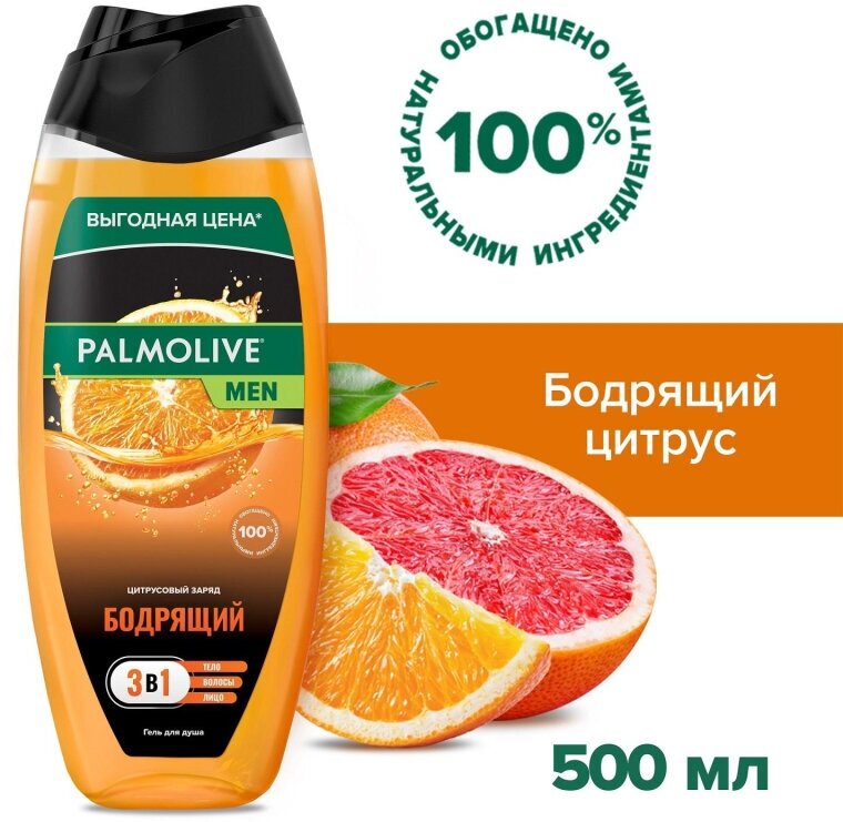 Гель для душа мужской Palmolive MEN Бодрящий Цитрусовый Заряд 3 в 1 500 мл