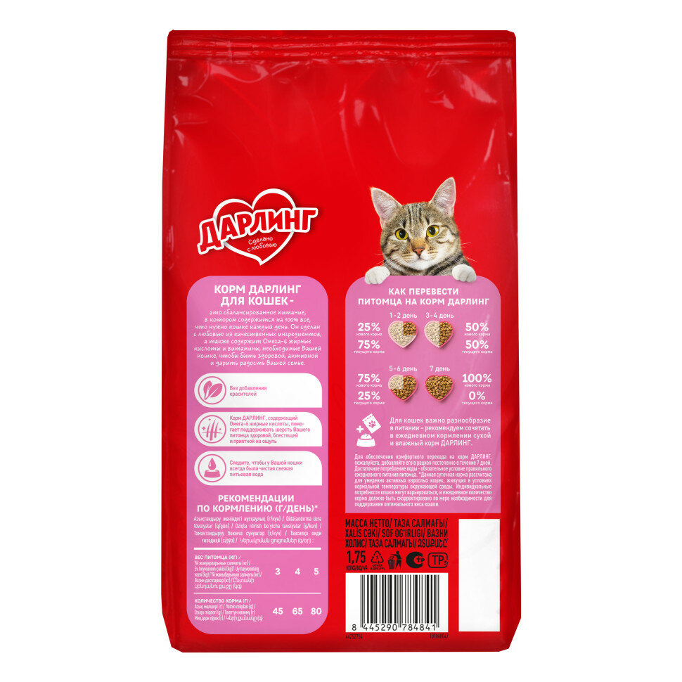 Корм Дарлинг для кошек - это сбалансированное питание, в котором содержится на 100% все, что нужно кошке каждый день. Он сделан с любовью из качественных ингредиентов, а также содержит Омега-6 жирные кислоты и витамины, необходимые Вашей кошке, чтобы быть здоровой, активной и дарить радость Вашей семье.
