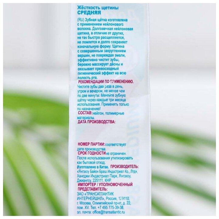 | Состав набора | зубная щетка, в ассортименте |