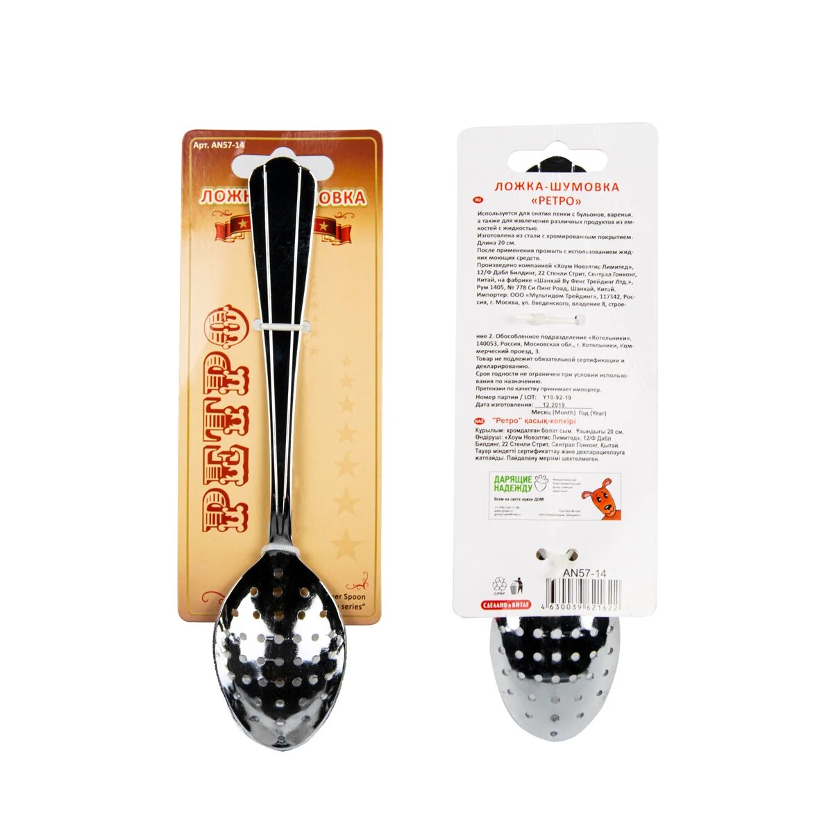 Ложка-шумовка Мультидом Ретро, 22х7х2 см используется для снятия пенки с бульонов, варенья, а также для извлечения различных продуктов из емкостей с жидкостью. Изготовлено из стали с хромированным покрытием. После применения промыть с использованием жидких моющих средств.