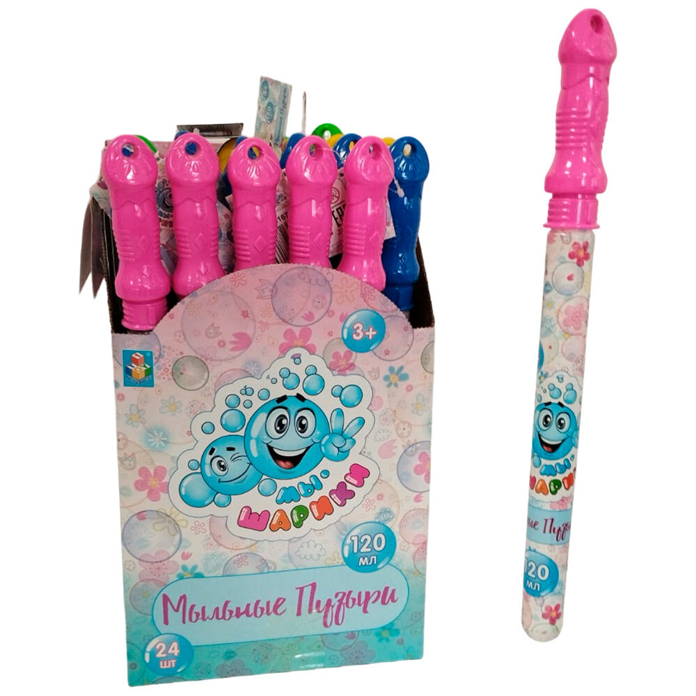 Игрушка для пускания мыльных пузырей "Мы-шарики" от бренда 1TOY представлена в форме колбы, объемом 120 мл. с венчиком. Можно пускать несколько пузырей одновременно! Откручивающаяся ручка исполнена в разных цветах в ассортименте: желтый, зеленый, синий, малиновый. Материал: пластмасса, мыльный раствор. Состав мыльного раствора: вода, глицерин, ПАВ, отдушка. Игрушка предназначена для детей от трех лет.