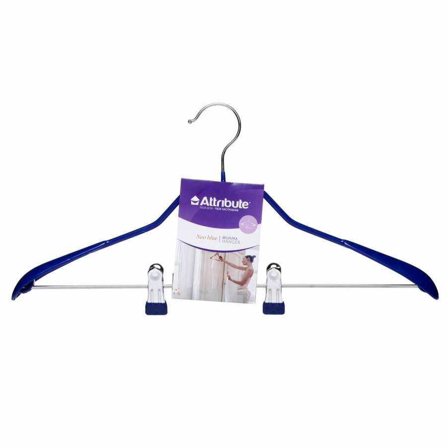 Вешалка для костюма Attribute Neo с зажимом, 45 см, с утолщенными плечиками. Универсальная конструкция обеспечивает аккуратное хранение; подходит для хранения верхней одежды, костюмов, брюк. Широкие плечики препятствуют вытягиванию.
