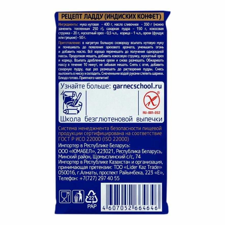 Сервис сравнения цен СкидкаГИД предлагает сравнить цены на товар «Мука Garnec Нутовая без глютена 500 г Гарнец»