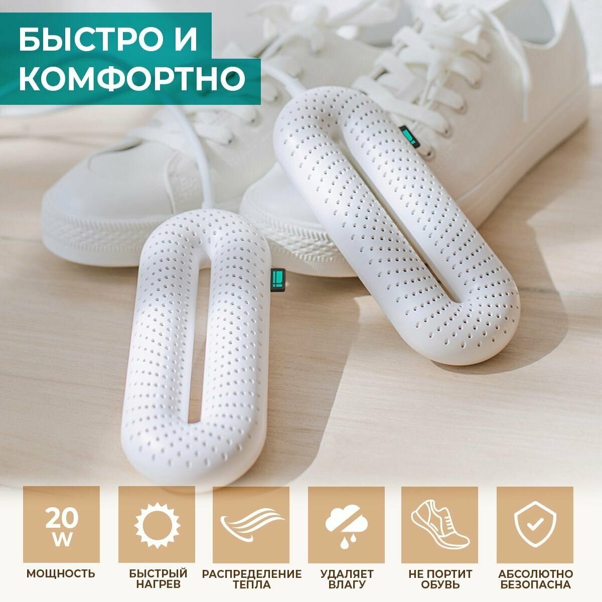 Сушилка для обуви Timberk T-SD40001 быстро и эффективно высушит любую обувь. Мощность устройства 20 Вт, что делает его нагрев максимально быстрым. Ключевой особенностью данной модели являются расположенные по всему корпусу отверстия, которые позволяют равномерно распределять тепло и делать процесс удаления влаги быстрым и качественным. Температурный режим устройства подобран таким образом, что исключена порча или деформация обуви, что делает процесс сушки максимально безопасным. Дизайн сушилки позволяет ей идеально помещаться в любой обуви, равномерно и всесторонне распределяя тепло внутри. Легкое и компактное устройство будет незаменимо не только дома, но и в поездках.
