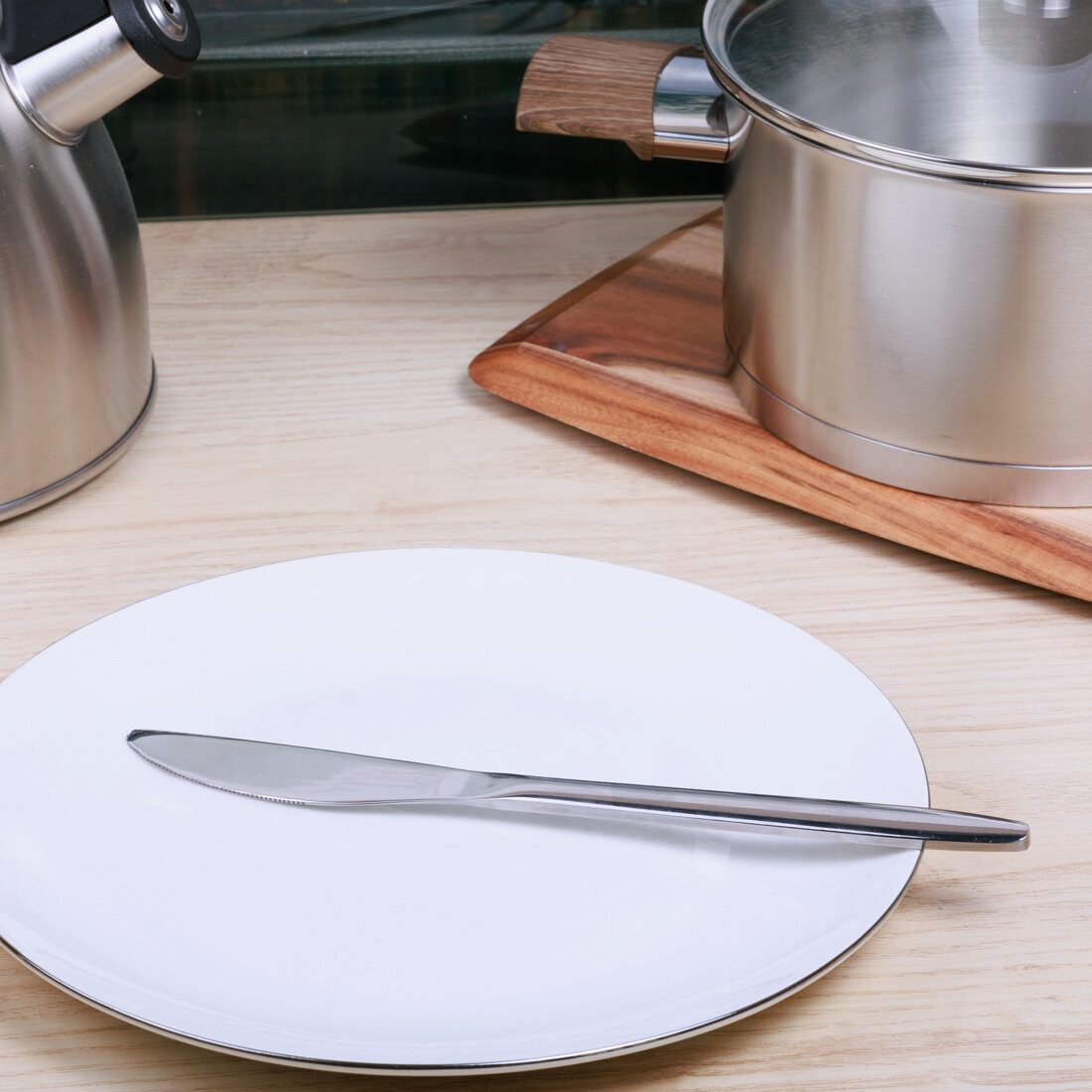 Набор столовых ножей из нержавеющей стали с прямой ручкой, выполненной в стильном минималистичном дизайне. Функциональны, практичны, дополнят сервировку стола.