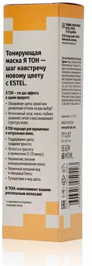 Маска тонирующая для волос Estel Я тон 11/07 Золотистый 60 мл