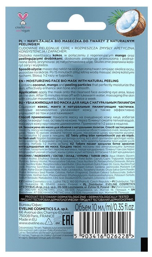 Увлажняющая bio маска со скрабом coconut&mango серии look delicious Eveline 10 мл Еveline