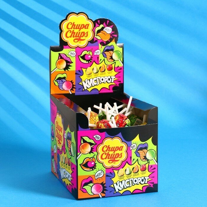 Chupa Chups Кислорот - это разнообразие уникальных кислых вкусов: лимон, вишня, яблоко и апельсин. Яркий, привлекающий внимание дизайн в стиле pop-art. Классический формат любимого леденца на палочке.