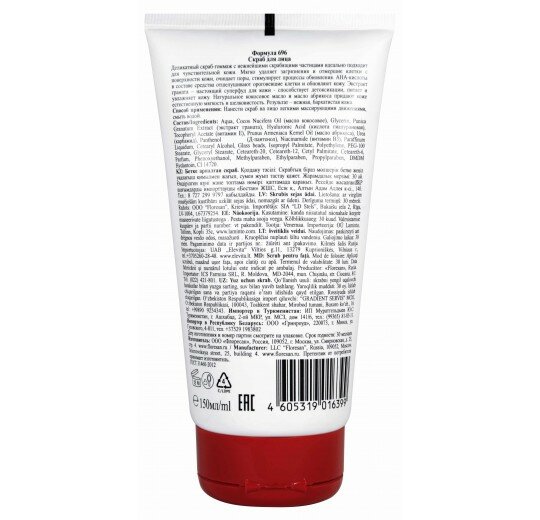 | Способ применения | нанести скраб на лицо легкими массирующими движениями, смыть водой |