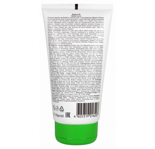 Идеальное средство для бережного очищения кожи с отшелушивающим эффектом. Обладает технологией мягкой скатки, которая при контакте с кожей захватывает верхний ороговевший слой эпителия и, при массажных движениях стирает его с Вашего лица. Скатка не содержит абразивных частиц и подходит даже для чувствительной кожи. АНА-кислоты деликатно очищают кожу, способствуют усилению выработки коллагена, благодаря чему кожа становится более упругой и эластичной. Экстракт яблока осветляет пигментные пятна, увлажняет кожу, освежает цвет лица. Результат, как после салонного ухода - Ваше лицо выглядит ухоженным, свежим и сияющим. Способ применения: Нанесите на сухую кожу, избегая области вокруг глаз, массируйте мягкими круговыми движениями. Средство преобразуется в частички, устраняющие загрязнения и жирный блеск. После процедуры смойте водой. Применяйте 1-2 раза в неделю. Подходит для всех типов кожи. Избегайте попадания в глаза. Возможна индивидуальная непереносимость компонентов. Только для наружного применения.