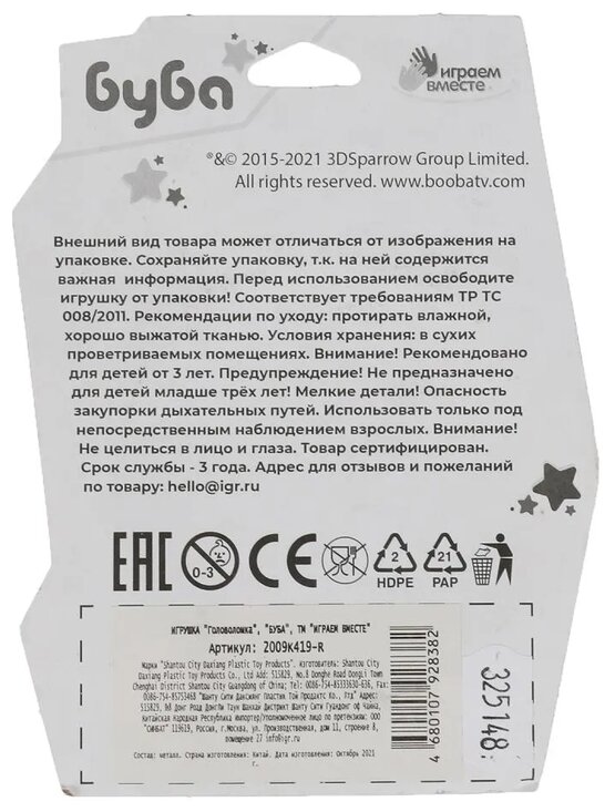 | Наименование модели | Головоломка Играем Вместе Буба |
