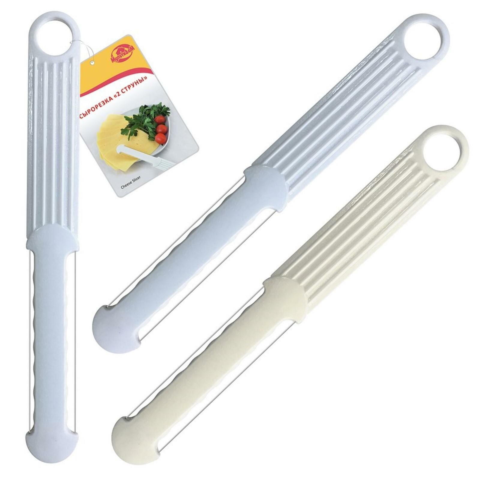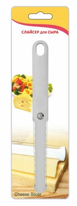 Предназначена для нарезки сыра ломтиками одинаковой толщины. Струна с обеих сторон изделия зафиксирована на разной высоте, что позволяет получать нарезку разной толщины. Изготовлено: корпус из пластмассы, струна из коррозионностойкой (нержавеющей) стали. После использования промыть мягкой щеткой или губкой, можно с использованием жидких моющих средств.
