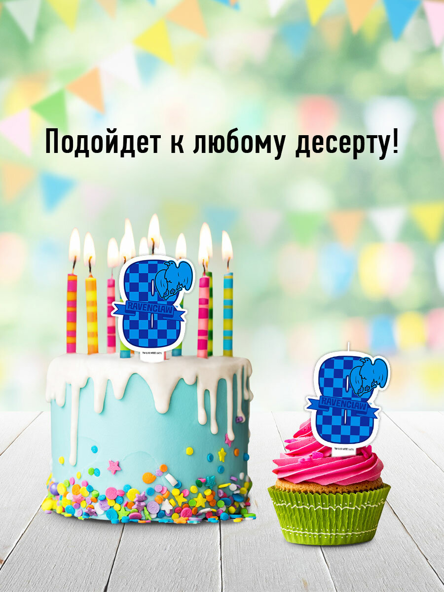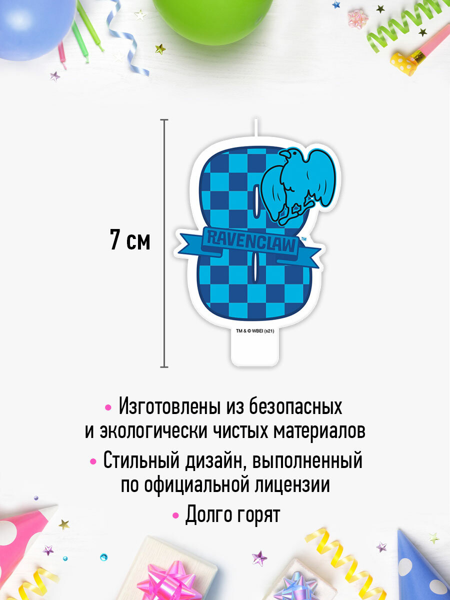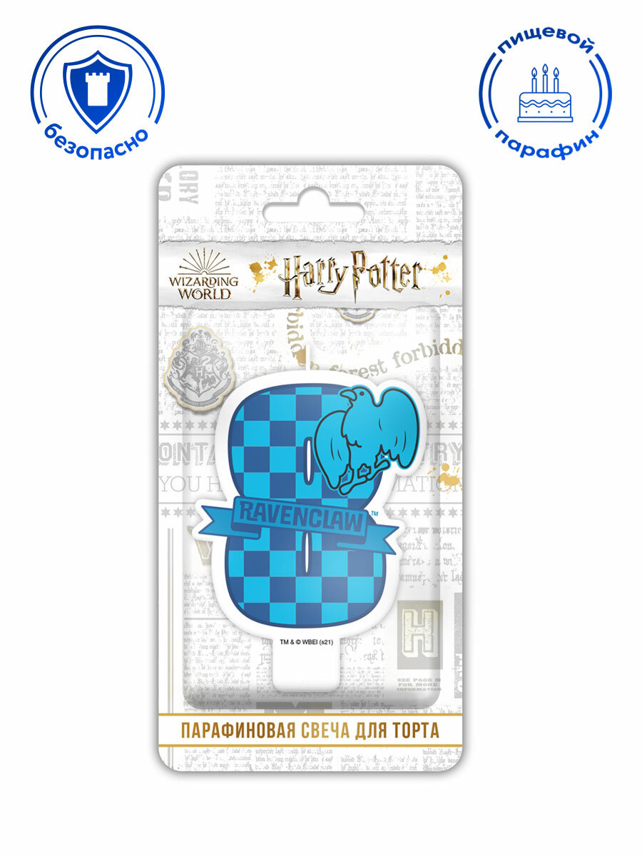Парафиновая свеча «Гарри Поттер» ? чудесный аксессуар для детского праздника и тематической вечеринки!Свеча с цифрой 8 и символом Когтеврана изготовлена из качественного пищевого парафина и упакована в блистер с еврохолдером. Свеча-цифра не займет много места на торте и не испортит внешний вид праздничного угощения.Сделайте праздник ярким и порадуйте именинника с помощью оригинальных свечей по мотивам «Гарри Поттера».