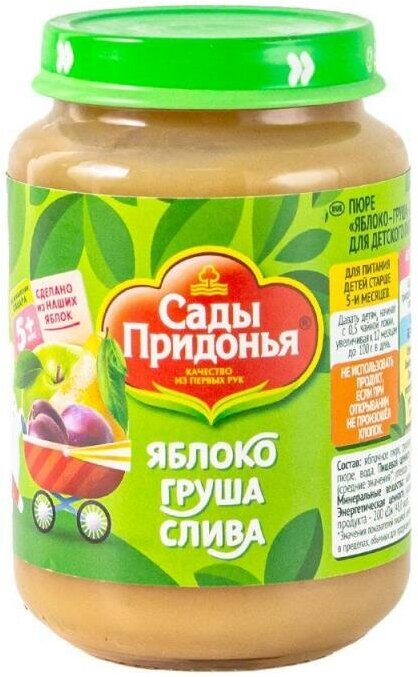 | Состав | яблочное пюре, грушевое пюре, сливовое пюре, вода |