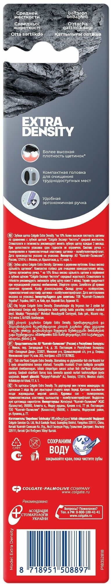 Зубная щетка Colgate Extra Density, средней жесткости специально разработана для эффективного очищения труднодоступных уголков рта благодаря высокой плотности щетинок с древесным углем и компактной головке. Высокая плотность щетинок. Компактная головка для очищения труднодоступных мест. Удобная эргономичная ручка. Стоматологи и гигиенисты рекомендуют менять зубную щетку каждые 3 месяца.
