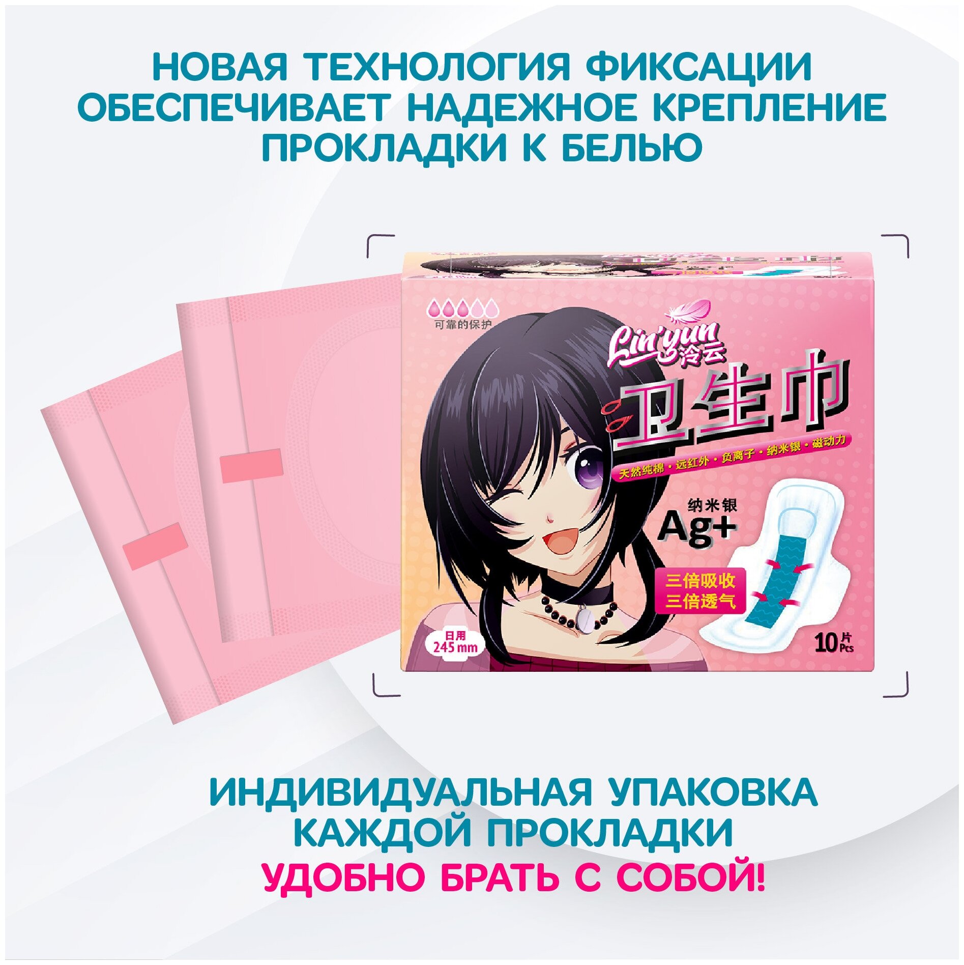 Гигиенические прокладки китайского бренда LinYun - секрет Вашей уверенности каждый день. Прокладки с анионовым чипом, магнитными полосами, напылением нано-серебра обладают мощнейшим воздействием на организм: лечебным, противовоспалительным, антипатогенным и профилактическим. Наши прокладки с заживляющим, антибактериальным и противовирусным действием, повышают иммунитет, оздоравливают микрофлору, устраняют неприятные запахи. Мгновенно впитывают, позволяя сохранить мягкость и свежесть даже в дни обильных выделений, способствуют уменьшению воспалений и благотворно влияют на женское здоровье. Прокладки произведены из качественного сырья первичной обработки, с двойным слоем воздухопроницаемого покрытия и ароматом зеленого чая. Рекомендованы в оздоровительных целях: после родов, в климактерический период, пожилым людям. Дневные 10 шт, ночные 8 шт, ежедневные 20 шт. Наши прокладки отличаются более удобной формой от Naturella(натурелла), Discreet(дискрит), Bella(белла, бела), котекс(kotex).