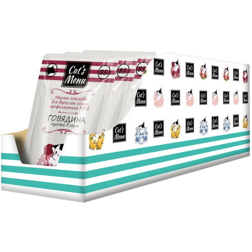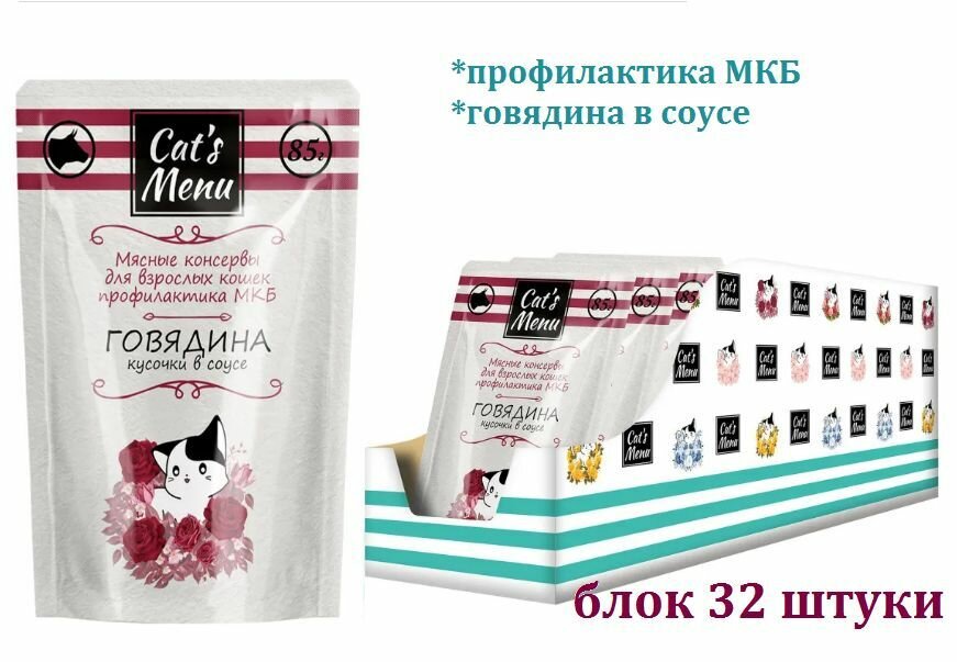 Корм для кошек Cat`s Menu профилактика МКБ с говядиной кусочки в соусе 85 г Cat's Menu