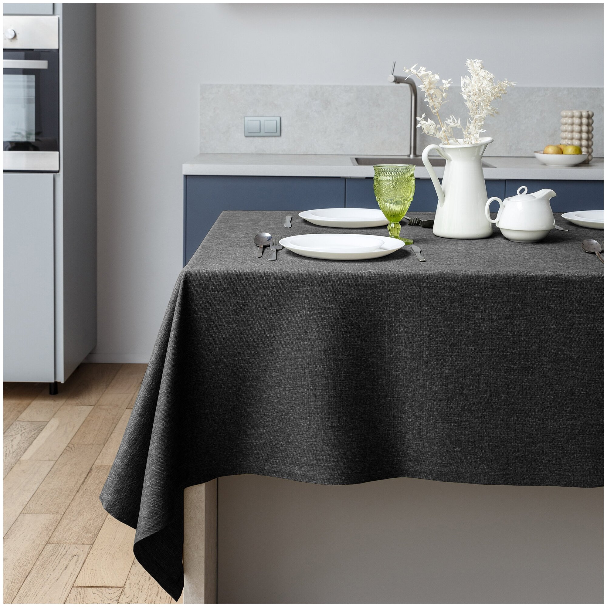 Пастельно мягкие цвета в сочетании с фактурой льна станут замечательным дополнением кухонного интерьера. Скатерти из коллекции создадут приятный фон для фотографий кулинарных шедевров, как у food-блогеров. Приятная текстура рогожки перенесет в атмосферу легкого завтрака на террасе прованского домика или в атмосферу уютного ужина у камина, в окружении семьи.
