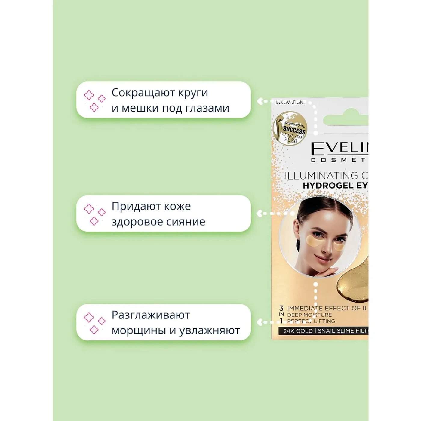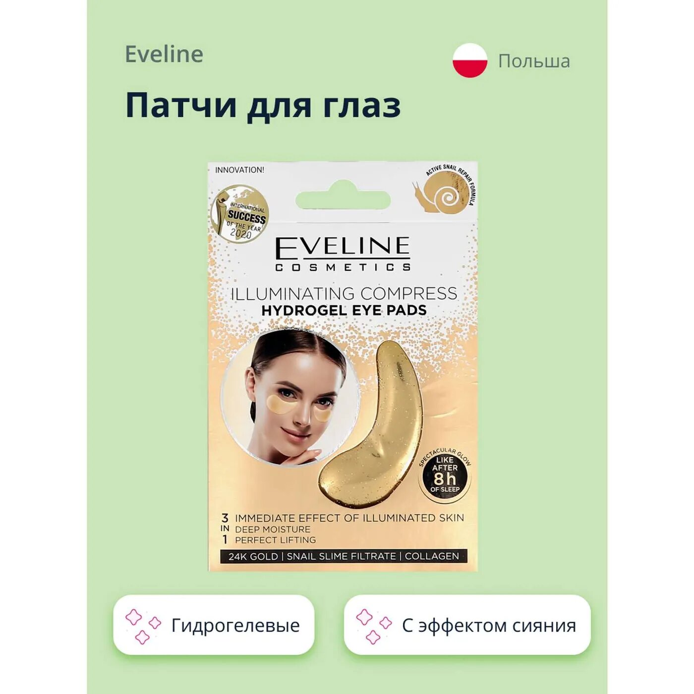 Гидрогелевые охлаждающие патчи для кожи вокруг глаз с эффектом сияния Eveline Еveline