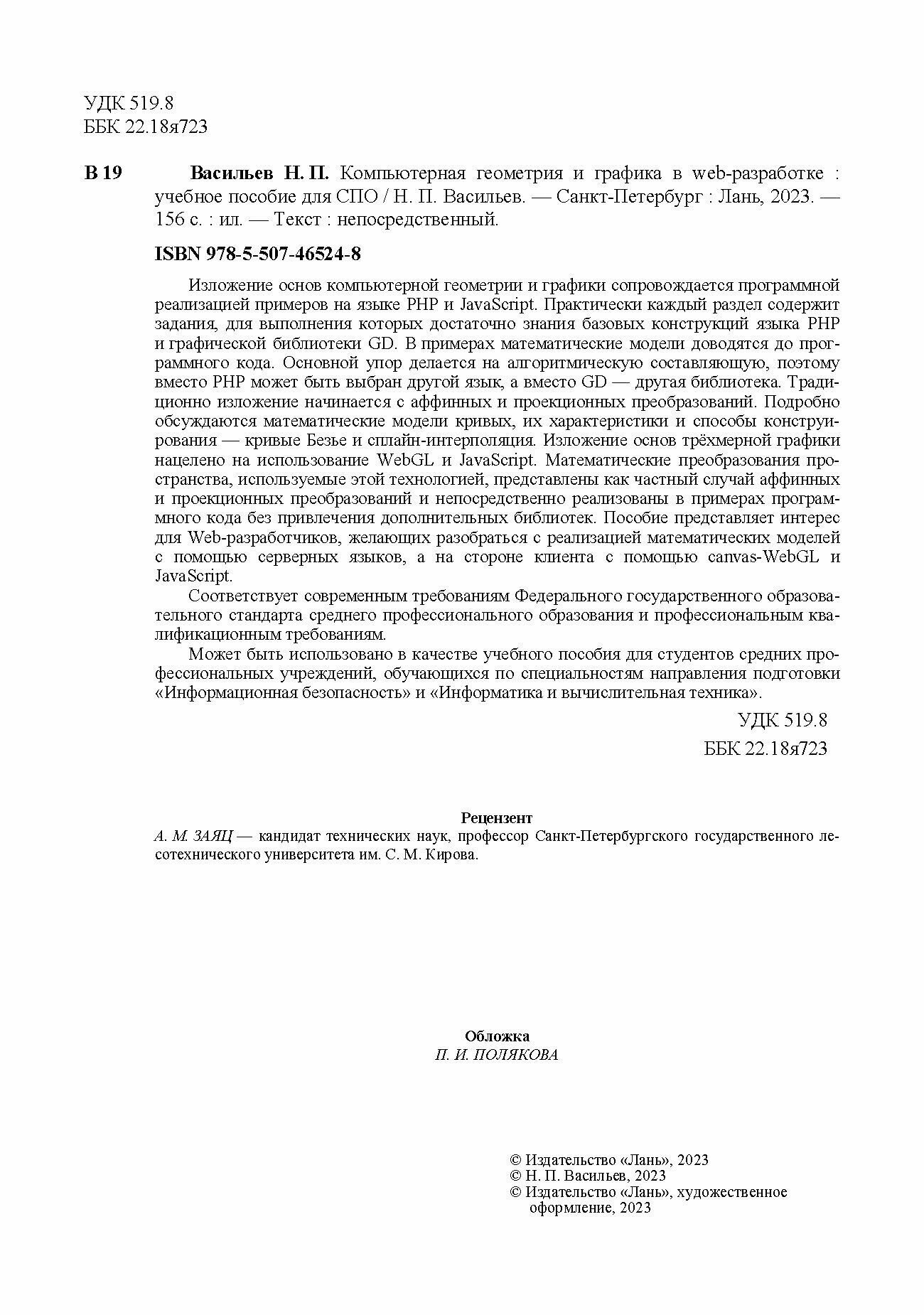 Компьютерная геометрия и графика в web-разработке. Учебное пособие для СПО (Васильев Николай Павлович); Лань, 2023