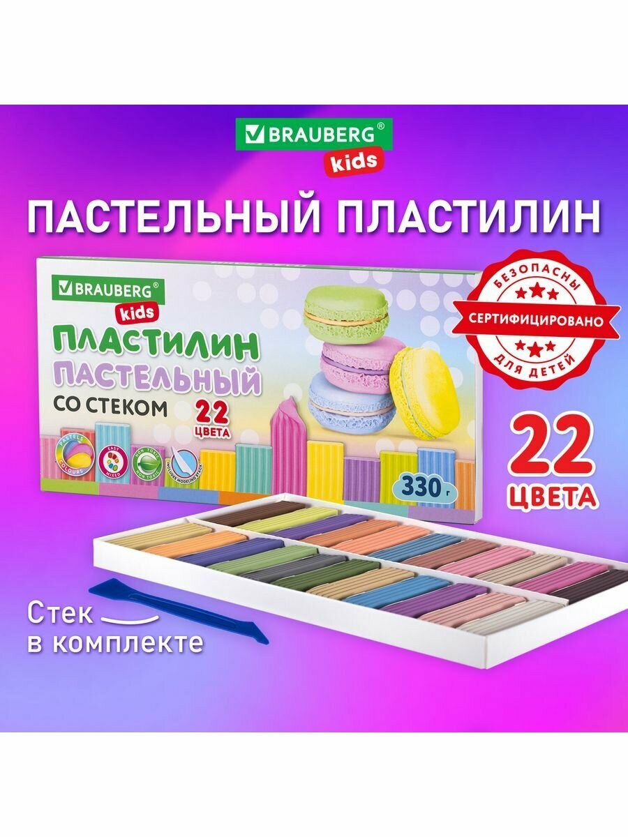 Пластилин Kids 22 цвета пастельные цвета Brauberg