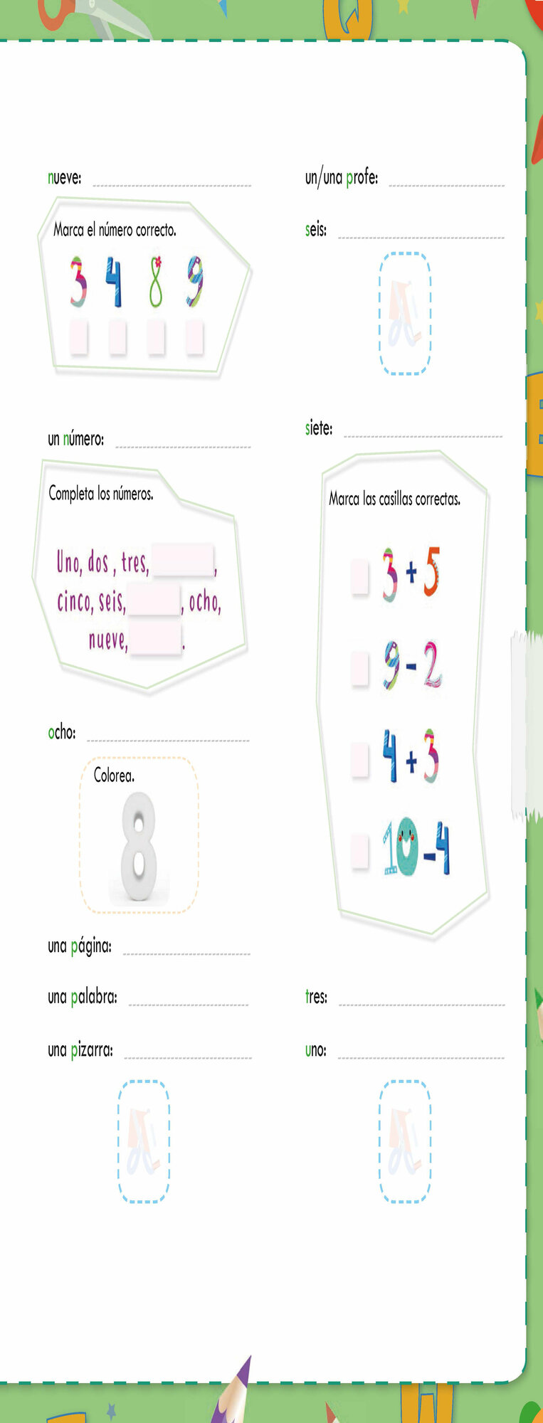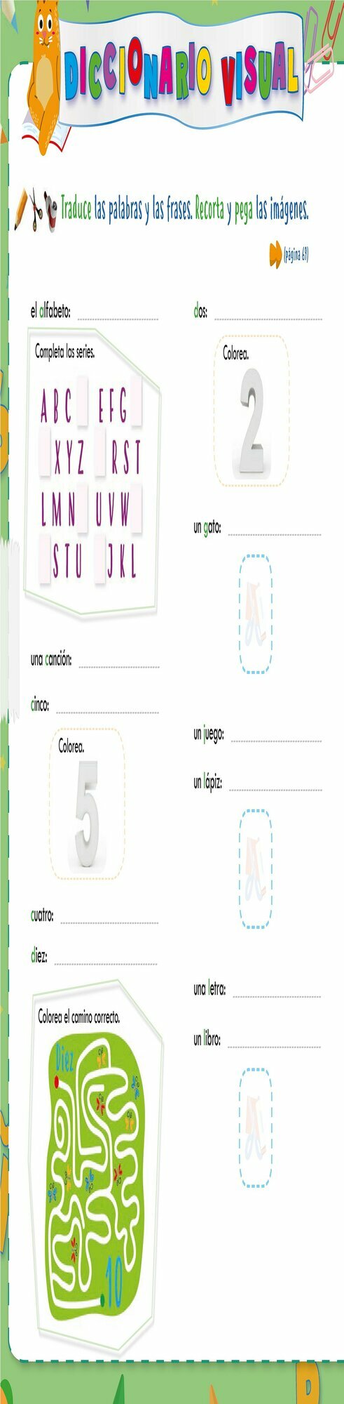 Contiene abundantes actividades ludicas como laberintos, crucigramas, juegos, canciones, etc.